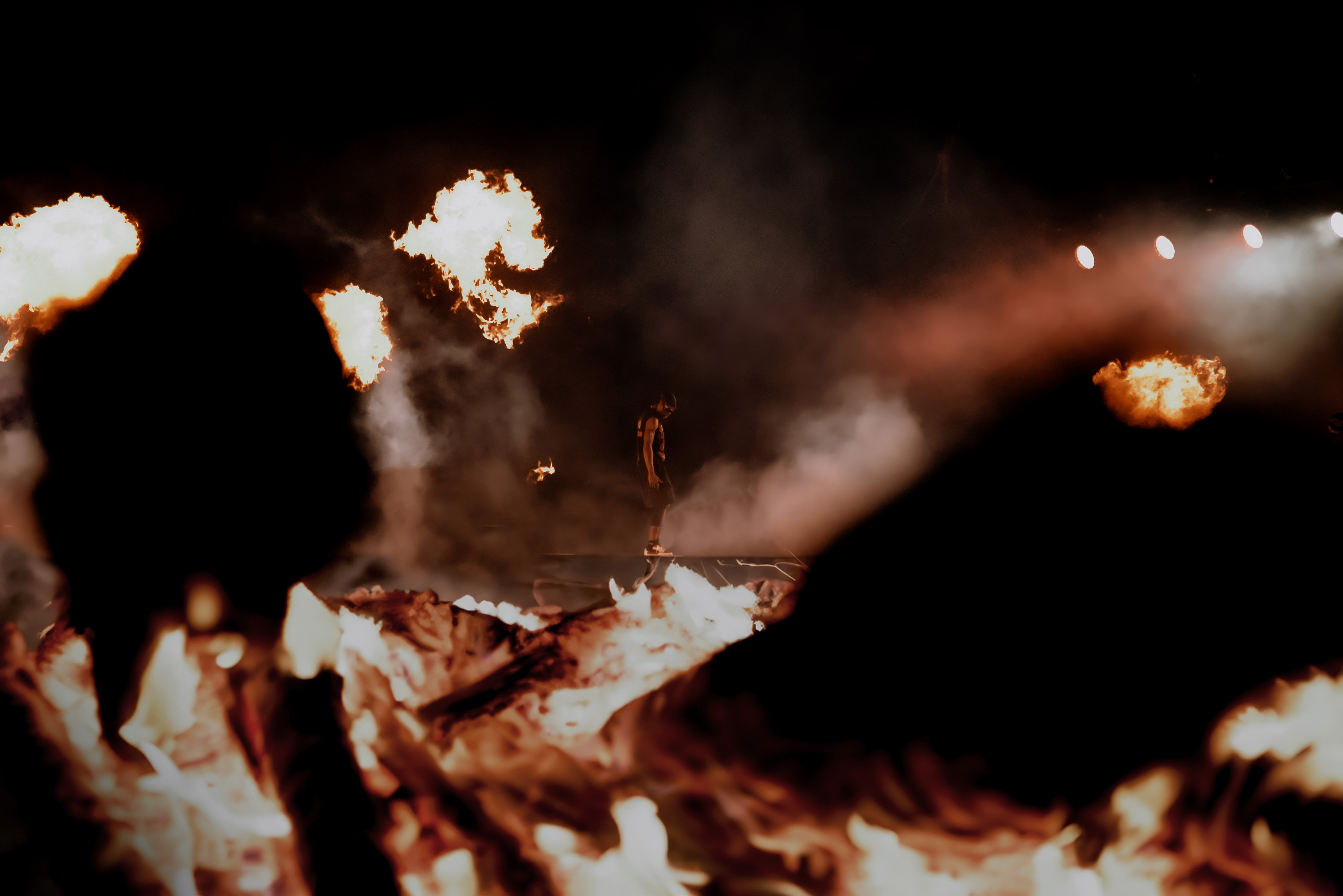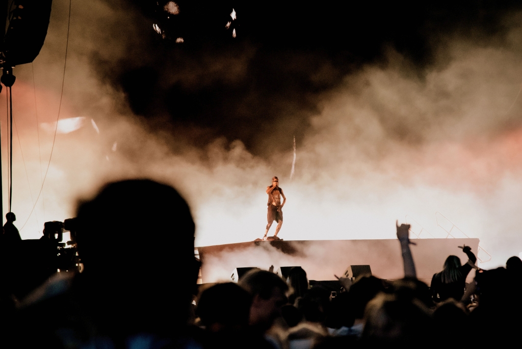 Headline, återvändare, live-kung. Travis Scott kunde beskrivas med många ord inför kvällens avslutande spelning på Tower Stage, som vid konsertstarten ser ut att ha hela festivalens uppmärksamhet. När han gör entré sisådär en (förväntad) halvtimme sen så exploderar scenen i eld och lågor med åsk- och örnljud från Chase B:s DJ-bås. Han kliver rakt in i ett rasande tempo med ”Hold That Heat” med Future & Southside, ett tempo som endast växlas ned när det är dags att plocka upp fans på scenen eller skälla ut kameramännen (såklart).