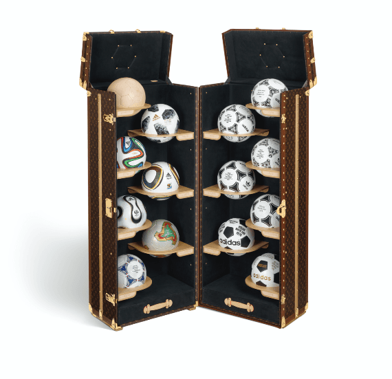 Under välgörenhetsgala som äger rum den 12 juli kommer Louis Vuittons unika FIFA World Cup Official Match Ball koffert auktioneras ut. Kofferten har tagits fram i samarbete med adidas och innehåller en samling av 13 nyupplagor av officiella matchbollar som använts på FIFA World Cup turneringar från 1970-talet till 2018. Alla bollar är signerade av tidigare VM-vinnare.