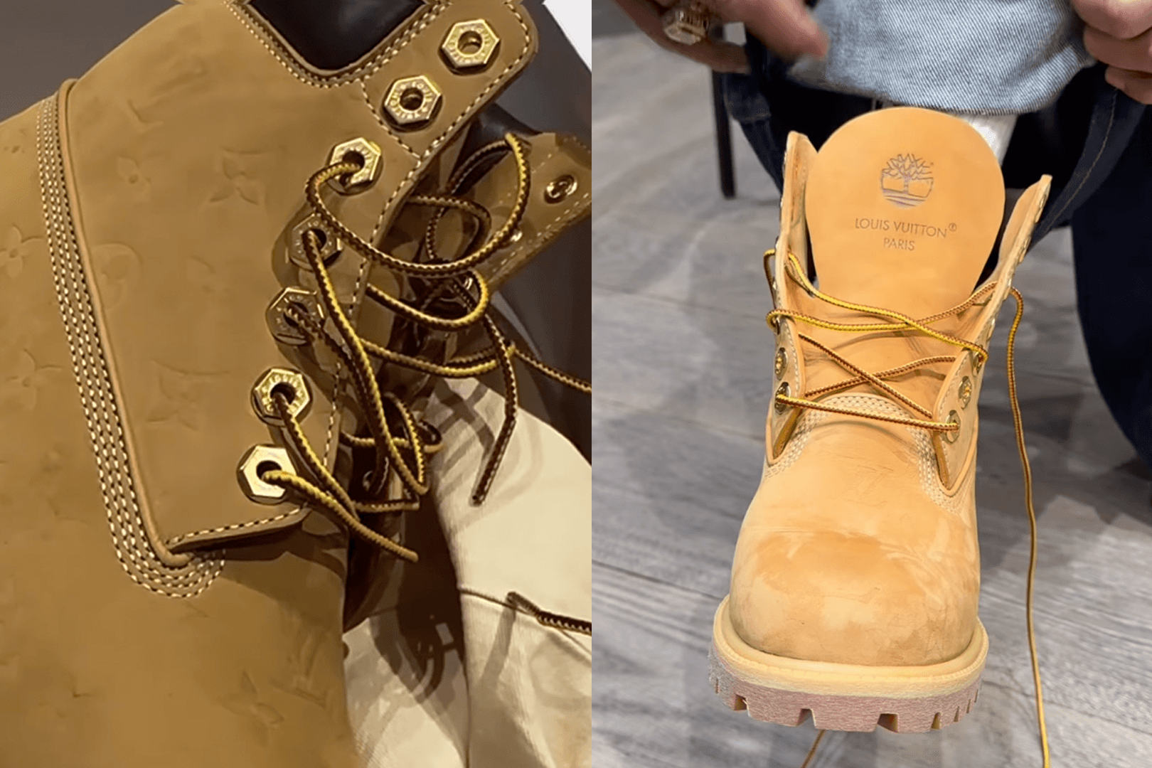Efter att Pharrell (via sitt andra konto @skateboard) delat med sig av ett kort klipp på den kommande skons framsida la han även upp Stories där man mer tydligt ser detaljerna i deras tolkning av den klassiska 6 inch-kängan. Instagram-kontot @ovrnundr.io spelade in och publicerade dessa som inlägg, där vi kan se det klassiska mönstret av LV-monogram tryckt på kängans sidor, samt under den tjocka gummisulan.