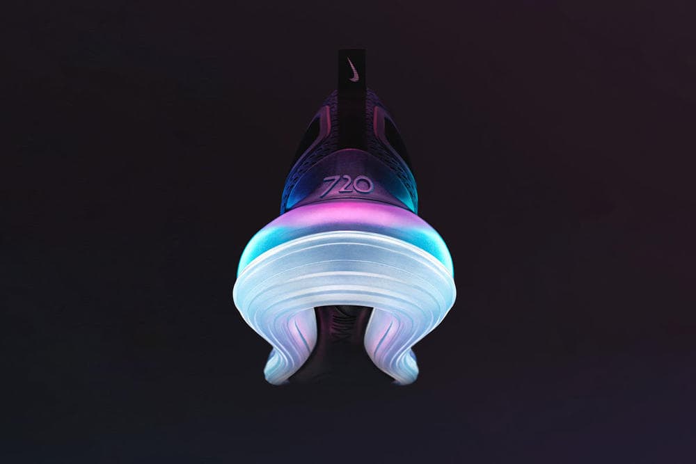 Nike har officiellt visat uppföljaren till sin Air Max 270 modell som släpptes i början av året. Skorna som fått namnet Air Max 720 är skräddarsydda för dagligt användande men mer specifikt för personer på vift och de som har på sig dem i flera timmar om dagen. Den nya Air Max enheten täcker hela yttersulan och ger skorna en futuristiskt utseende. Skorna har även en 720 branding placerat på hälen ovanför Air Max sulan.