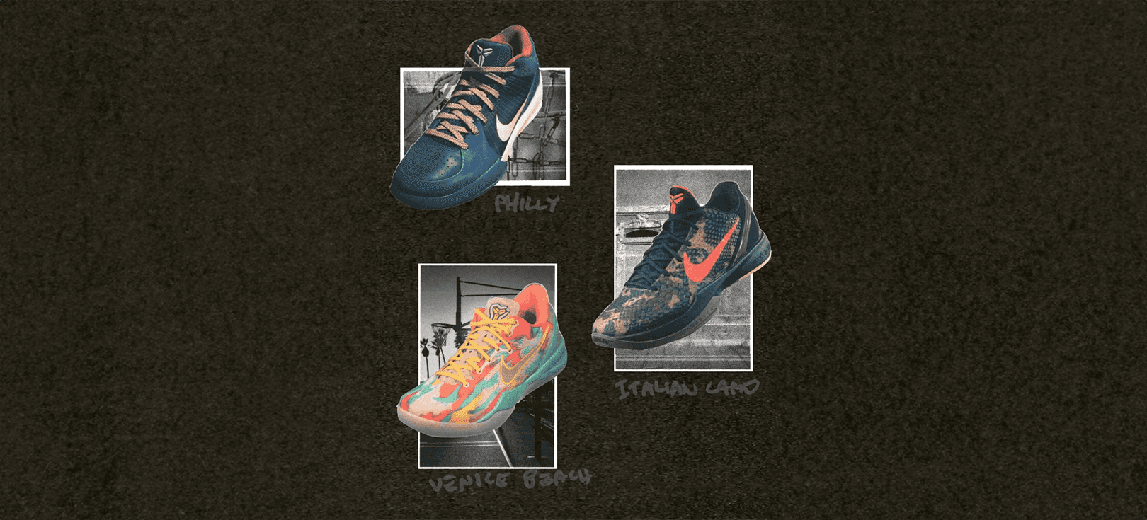 Tre modeller har presenterats inför helgen: Den blåa ”Philly” Kobe 4, Den gröna ”Italian Camo” Kobe 6 och den neonfärgade ”Venice Beach” Kobe 8. Kobe 4 är inspirerad av staden Philadelphia, Bryants födelsestad, medan Kobe 6 är en hyllning till att han flyttade till Italien med sin familj när han var barn. Kobe 8 hyllar Bryants 20-åriga karriär i Los Angeles och stadens ikoniska Venice Beach.