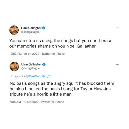 De har dock varit minst lika kända för sina bråk som sin musik. Bröderna Liam & Noel Gallagher som grundade bandet har genom åren haft öppna bråk med varandra och 2009 splittrades bandet, vilket många trodde var för gott. Sedan dess har deras problem med varandra varit extra synliga på X, så sent som 2022 kallade Liam sin bror Noel ”en hemsk liten man” för att han inte lät Oasis-låtar vara med i en film.