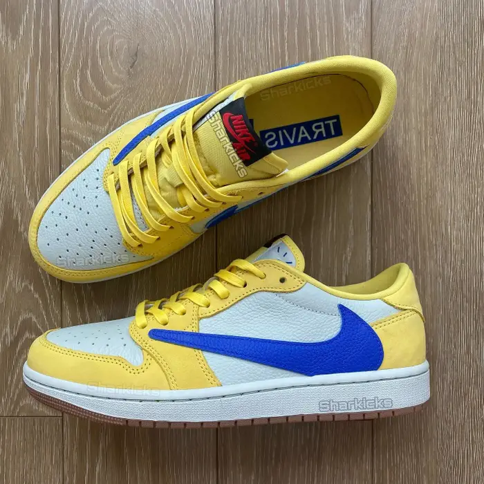 Läs mer om Se bilder på Travis Scott x Nike Air Jordan 1 Low "Canary" - 2024.01.06