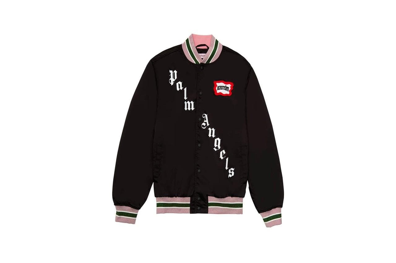 Ett av plaggen som sticker ut är collegejackan som går under namnet ”Skull jacket” och kommer i en sportig look med BBC ICECREAM loggan på bröstet och Palm Angels loggan snett över jackan. På baksidan av jackan får vi se BBC ICECREAMS signatur glass broderat i strass. Priset på jackan för den som är sugen på att klicka hem den är cirka 20 000kr.