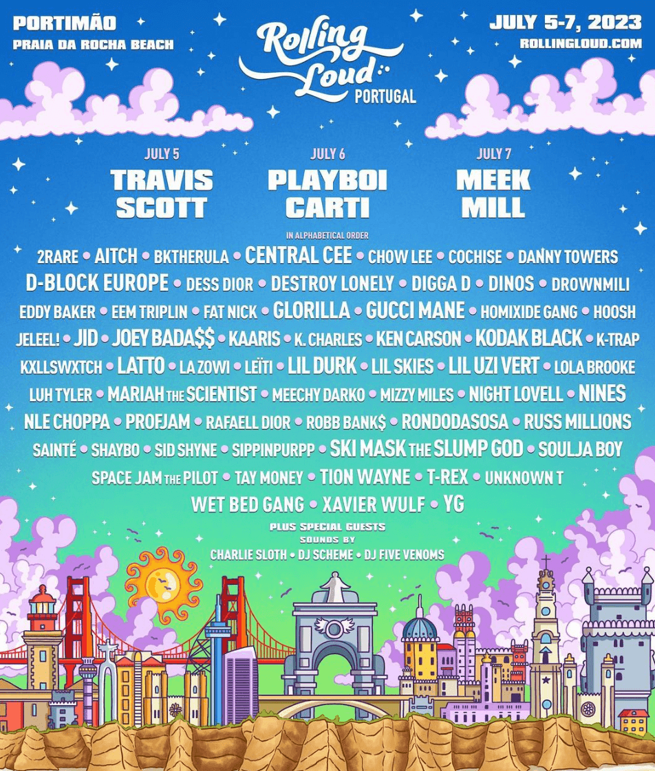 Den 23e januari släppte Rolling Loud line-up till festivalen i Portugal som äger rum från den 5e till 7e juli i sommar. Playboi Carti, Travis Scott och Meek Mill är valda som headliners, varav de första två även headlinar Rolling Loud i Californien i mars. Central Cee, Kodak Black och Lil Durk är bara några av namnen som sticker ut i den fullständiga listan, som kan komma att fyllas på under våren.