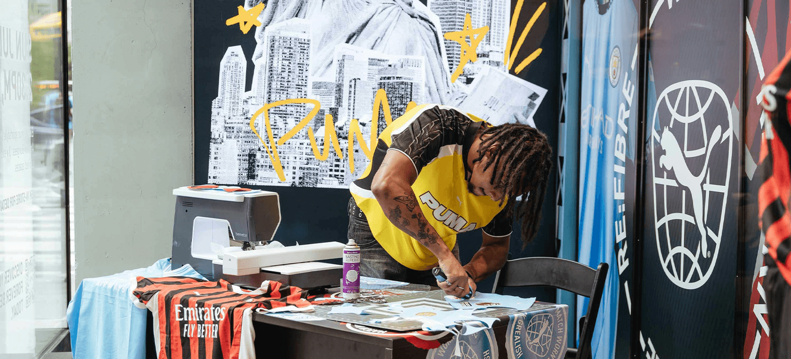 En skräddare baserad i New York kallad Wandy The Maker höll tidigare under sommaren i tre workshops på hur man kan använda upcycling inom mode- och sportvärlden. Detta firande av RE:FIBRE-initiativet innehöll dock en intressant twist: Fotbollströjor burna av riktiga proffs användes i processen.