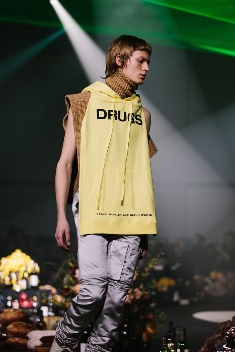 Raf Simons presenterade nyligen sin efterlängtade FW18 kollektion under New York Fashion Week. Kollektionen som gick under namnet ”Youth in Motion” och gick i ett fest och tonårsdrogmissbruk-tema där slagord som ”LSD”, XTC”, ”GHB” och ”2C-B” syntes på tröjor, byxor och ytterkläder. Hela kollektionen har hämtat sin inspiration från Uli Edels film ”We Children of Bahnhof Zoo” från 1981 och som handlade om just drogmissbruk bland ungdomar samt från Cookie Miller och Glenn O’Briens bok ”Drugs”.