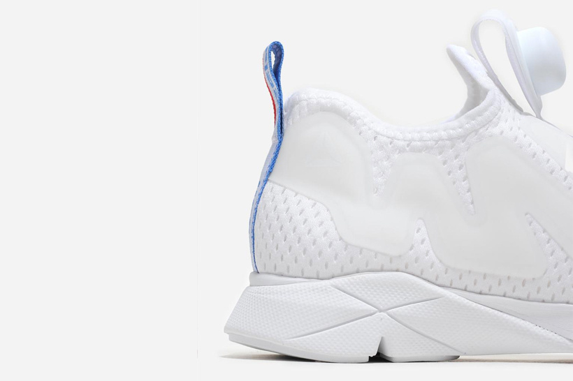 Reebok Pump Supremes nyaste behandling är en ren vit färgsättning som perfekt framhäver siluettens futuristiska form. Denna eleganta loafer är konstruerad av en skarp vit mesh överdel och mellansula, medan dess signatur sicksack bur och pumpteknik får en genomskinlig tvätt av vitt för en intensiv monokromatiskt utseende. Denna helvita silhuett uppvägs av en klassiskt rött och blått jacquard färgat Reebok branding strip som rinner ner i mitten av den övre fliken hälen. Du kan få tag på ett par Reebok Pump Supreme Jacquard Tape för 1500 DKK hos återförsäljare såsom Naked.