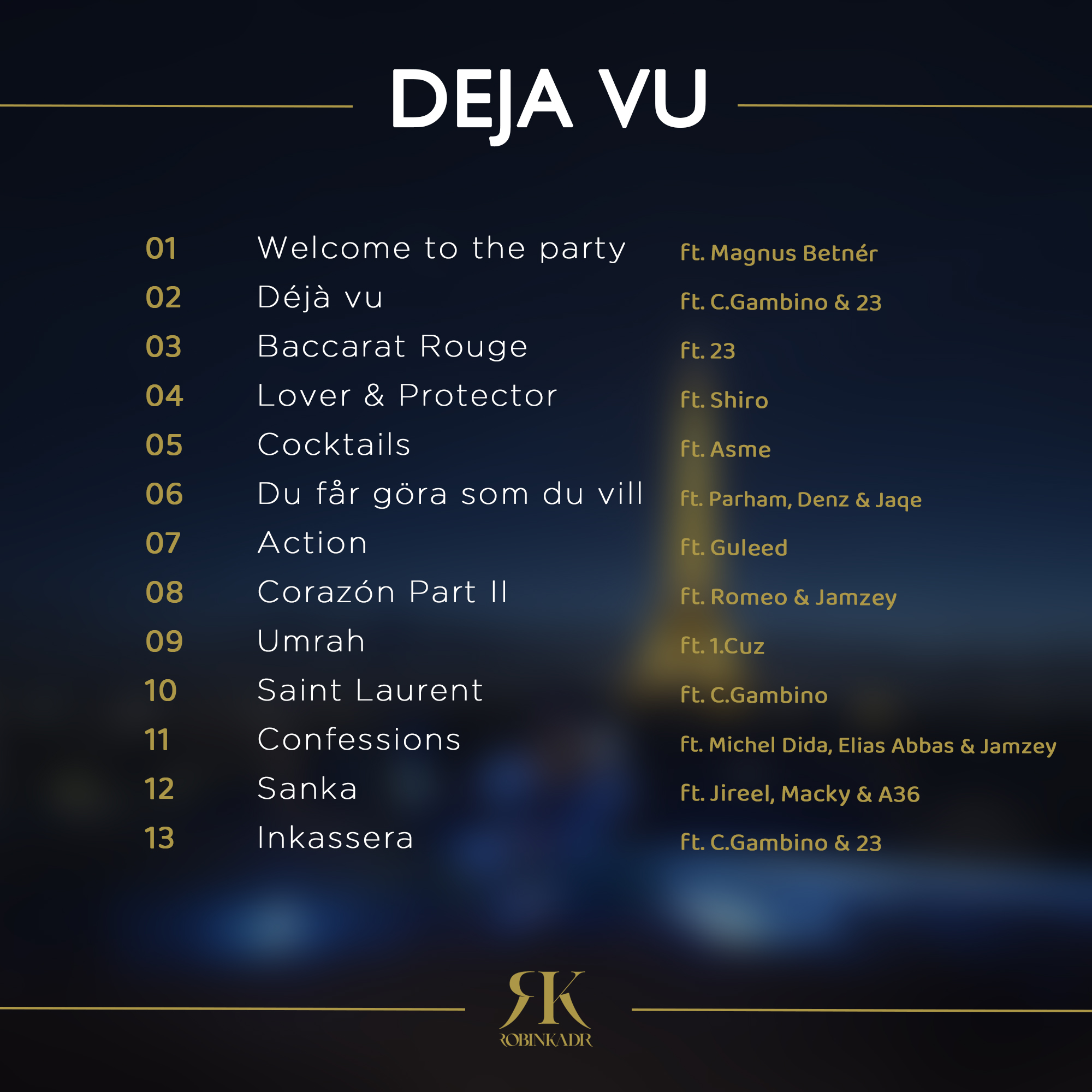 Under våren har han laddat upp inför sitt debutalbum Deja Vu, genom singlarna ”Cocktails” med Asme och ”Saint Laurent” med tidigare nämnda Gambino, varav båda streamats över tre- respektive fyra miljoner gånger. Nu börjar det närma sig albumets release och därmed spär även Robin på hypen med en officiell album trailer. I samband med detta har han även avslöjat albumets omslagsbild och hela tracklist, som bland annat gästas av alla från Jireel, Macky & A36 till komikern Magnus Betnér.