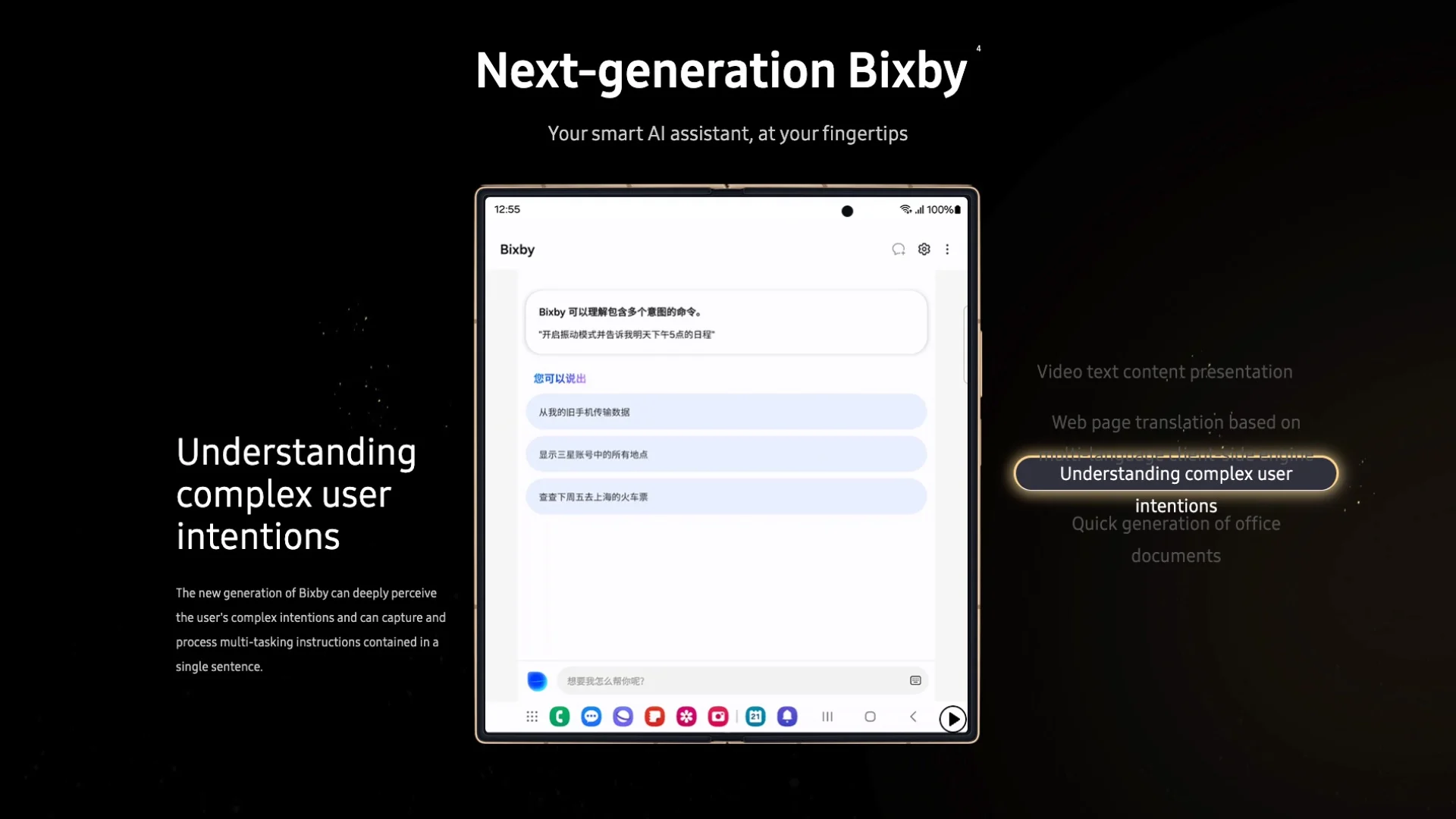 Enligt läckta bilder från Samsung ska nästa generations Bixby förstå ”komplexa användarinstruktioner” som kombinerar flera kommandon i en enda mening. Den kommer även att kunna hämta information från det som visas på skärmen, vilket skulle kunna vara som kartor eller bilder likt i Apple Intelligence senaste uppdatering.