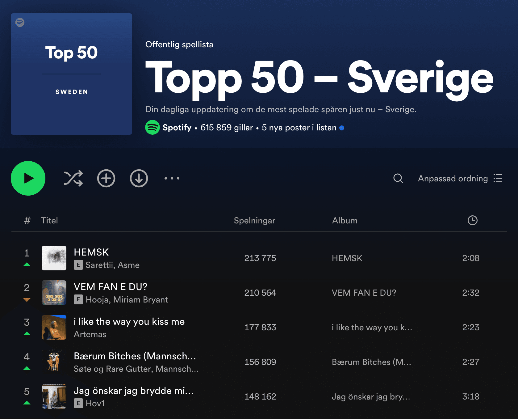 Sarettii & Asmes "HEMSK" blir etta på Spotify Topp 50