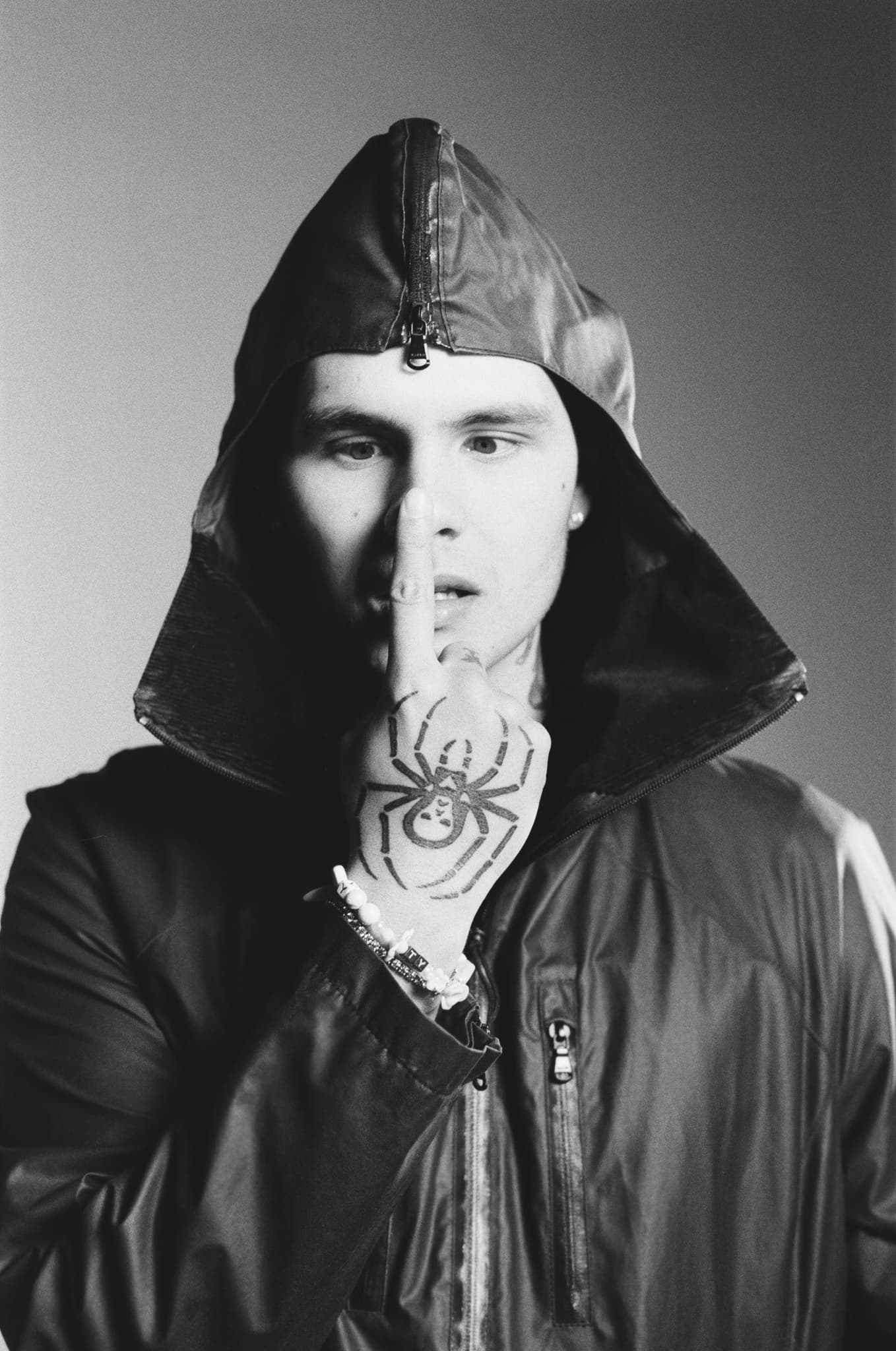 När pandemin är över är han sugen på att dra ut på turné igen – med stopp i Sverige. Han nämner att han har koll på några svenska artister. Utöver klassiker som ABBA, lyssnar han på allt från Bladee, Yung Lean och Sad Boys – till favoriten Viagra Boys. Med strax över 30 tatueringar har han jobbat sig en liten bit på vägen mot att bli lika gaddad som Viagra Boys frontfigur Sebastian Murphy. Det senaste tillskottet bläck sitter på armen, och föreställer silhuetten av en stor spindel. När jag nämner att den påminner mig om Young Thug’s klädmärke Spider, ler slowthai finurligt. “I met him, but I don’t think we really hit it off,” säger han. “I met Young Thug in a toilet … He was washing his hands and I walked in to go for a piss. And when I saw him I was like: Thugger?!” fortsätter han. Till hans besvikelse är snubbar inte lika pratglada och sällskapssjuka som fulla tjejer på krogtoaletten (kanske har det att göra med att de har mindre privacy) och konversationen blev inte långvarig. “I think it’s a bit of a weird one. I don’t really see it like that but I definitely think he was not into it” skrattar slowthai.