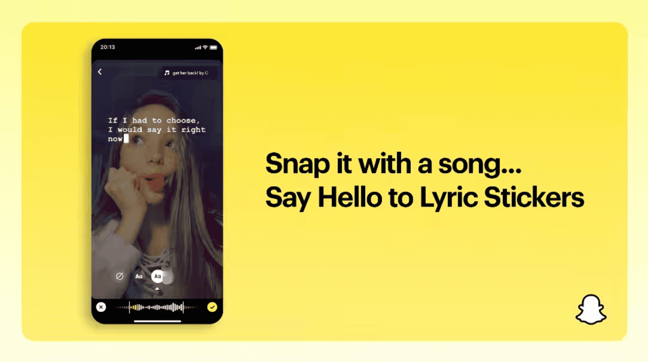 Snapchat har i samband med den nya uppdateringen även introducerat möjligheten att ha musik med text på snaps. Funktionen påminner om den som redan finns på Instagram, där en låt med verifierad text kan ”synkas” med din snap-bild eller video. Såklart kan denna funktion även kombineras med memories, kanske för att lägga till en nostalgisk låt till ett minne från förr.