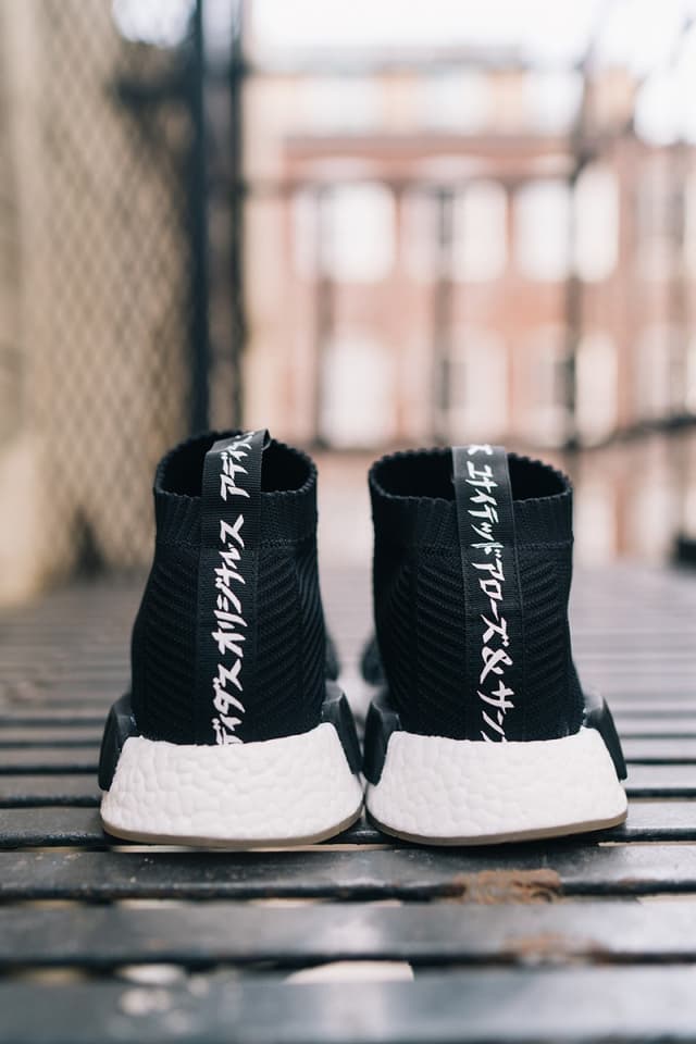 Tillhörande har man tagit fram en NMD CS1 som har en helsvart överdel, vit Boost sula med svarta ”EVA” pluggar och en gummi undersula. MIKITYPEs text på finns på framsidans gummiplugg, hälen och på sidan av skon. Även på insidan hittar vi den co-brandade texten.