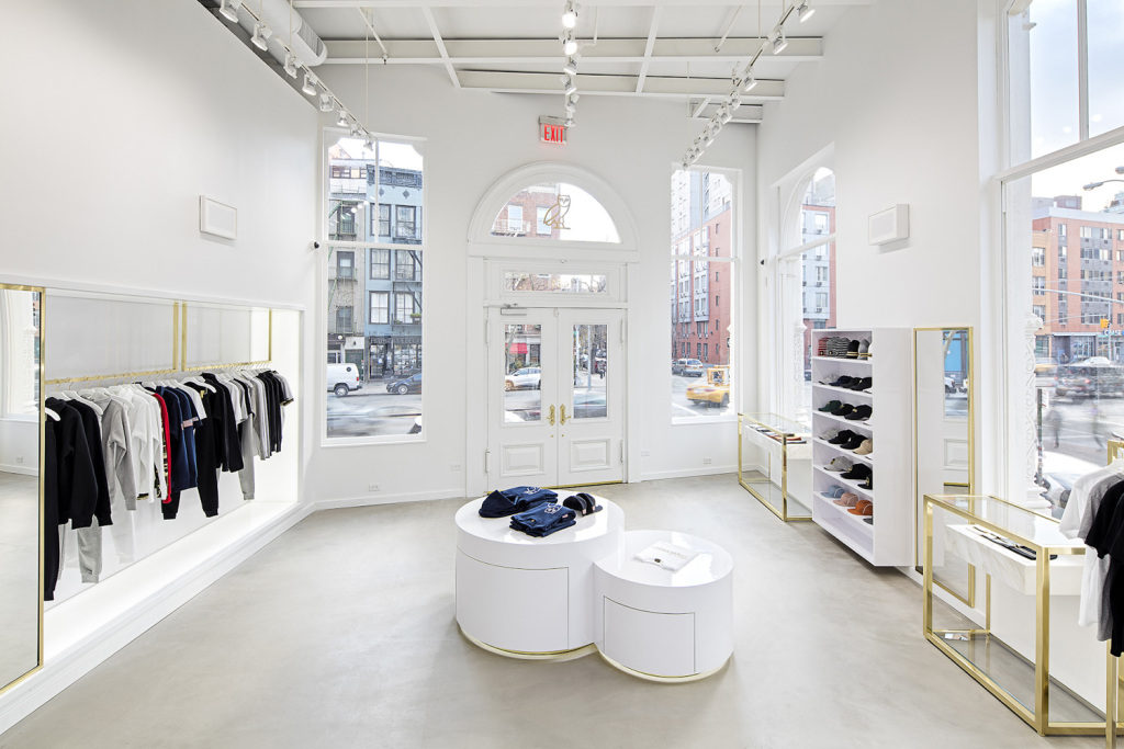 För dem som har ännu inte hunnit göra resan över Atlanten och tittat in i butiken, får vi nu en bra titt inuti flaggskeppsbutiken. Butiken tar till en ren vit inredning med guld detaljer, vilket avger en extra ren och fräsch atmosfär. Spana in galleriet ovan.