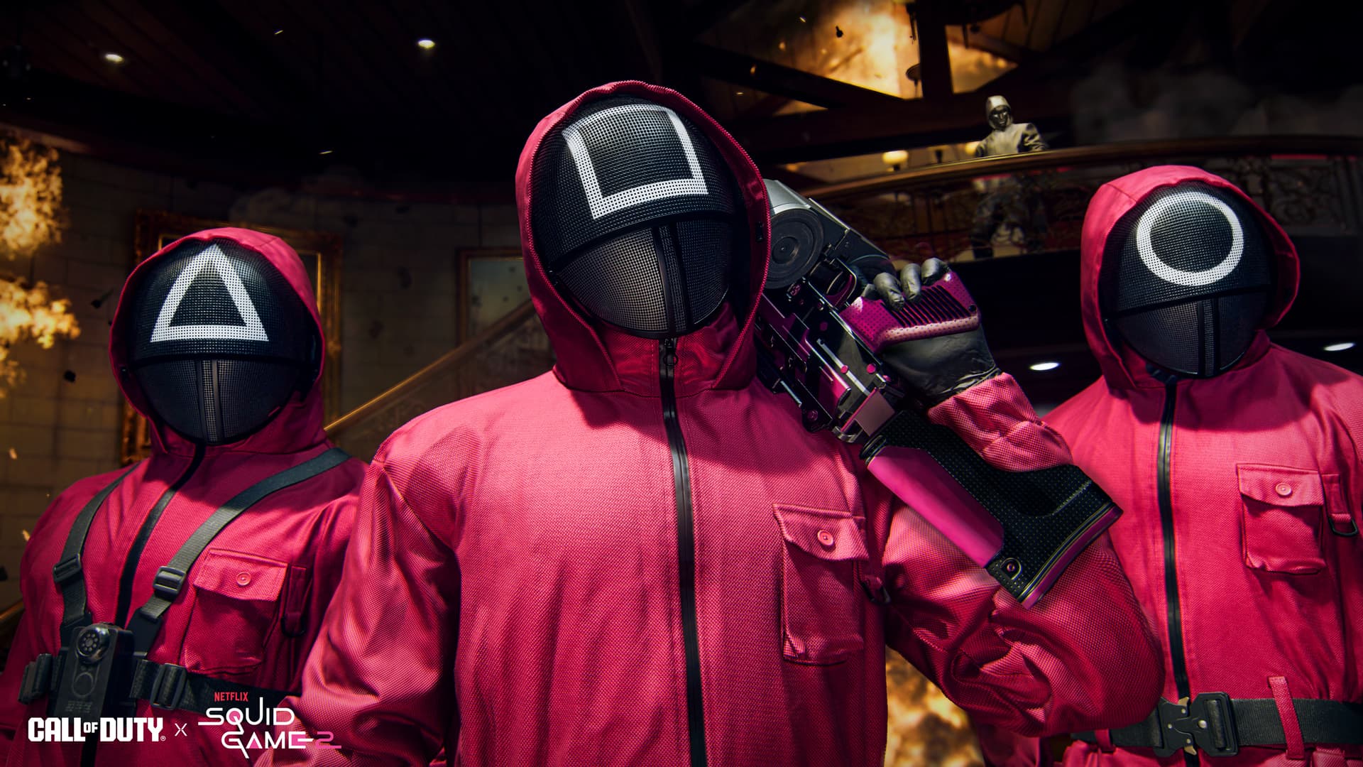 Vinn allt eller dö när Squid Game anländer till Call of Duty och introducerar ett nytt spelevenemang med temabaserade belöningar och flera tidsbegränsade lägen i Multiplayer, Zombies och Warzone. Dessutom ger nya Squid Game Bundles en samling tillägg som Pink Guards, VIPs och Young-hee.