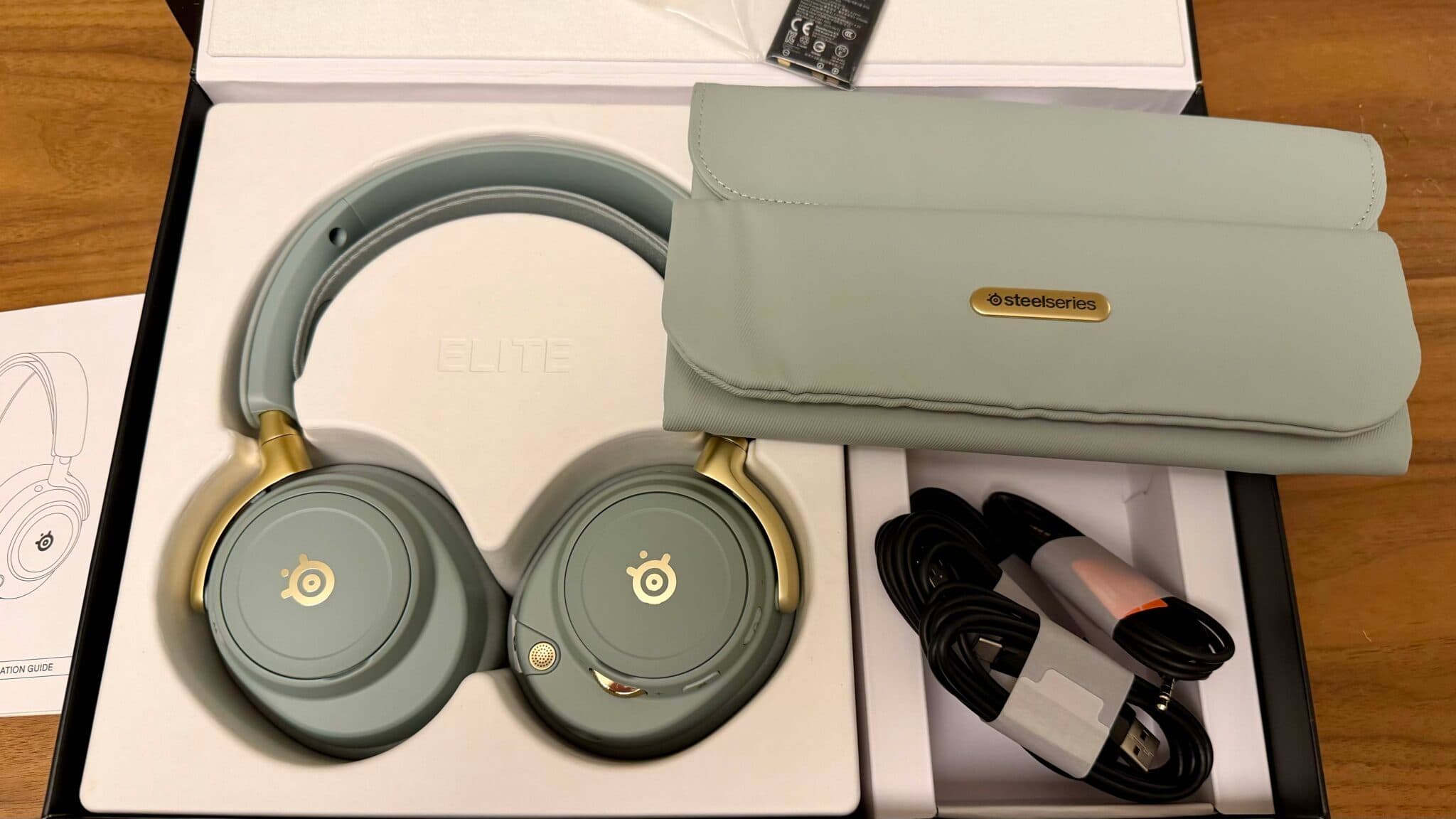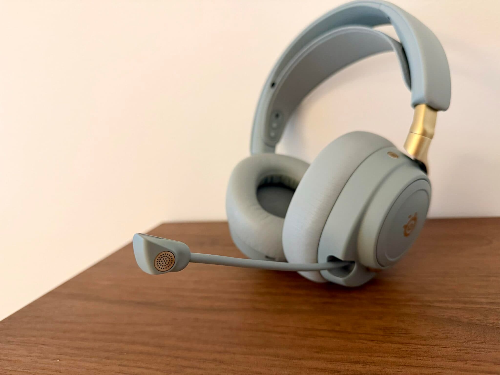 Arctis Nova Elite är ovanligt snyggt designad. Den känns clean och lyxig snarare än ’hardcore gaming’. Den finns i två färger: Obsidian (svart) och Sage & Gold (salvia/guld) och vi testade Sage & Gold, som ser riktigt dyr ut IRL. Hörlurarna är framtagna i samarbete med Jacob Wagner som är känd för sin minimalistiska och funktionella design.
