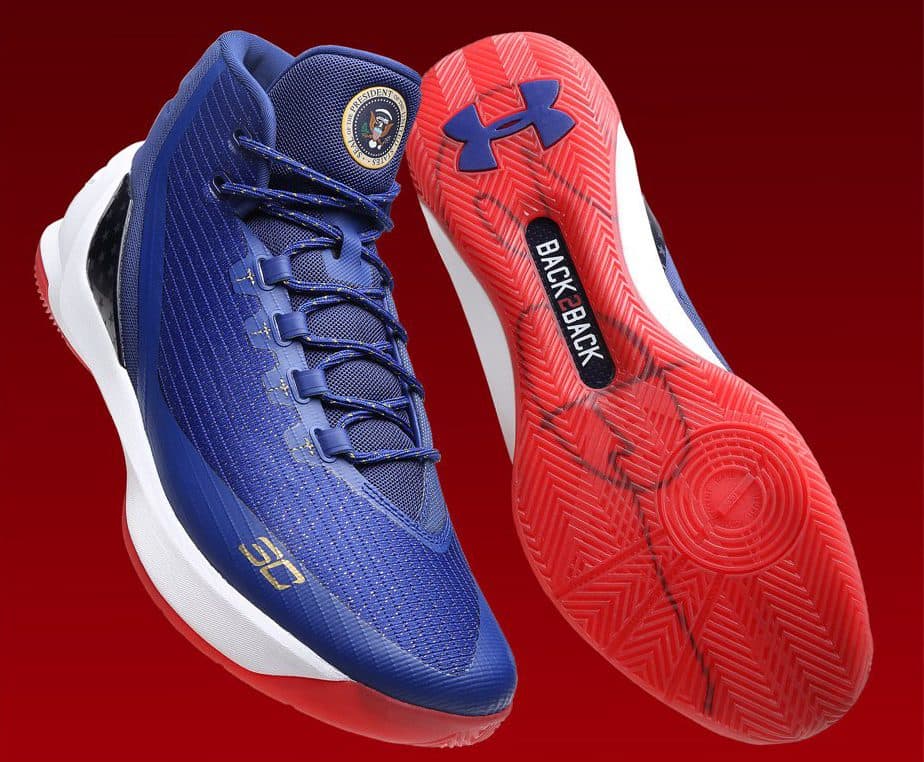 Amerikanska Presidenten Barack Obama avslutar sin tid i vita huset. Nu väljer Golden State Warriors superstjärna att tillsammans med Under Armor att hylla usa’s 44e president på sin nya signatursko ”The Under Armor Curry 3”. Under skon finns uttrycket ”Back 2 back” som hyllar Obamas två terminer som USA’s ledare. Vi hittar även presidentens sigill på skon samt basketstjärnans initialer.
