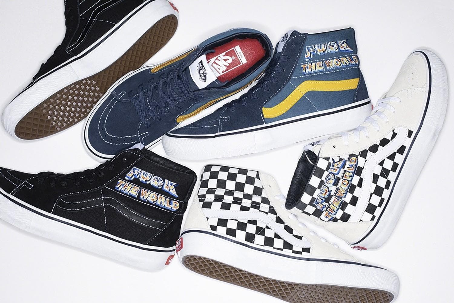 Ny vecka, nytt Supreme drop och nytt samarbete. Efter att ha släppt samarbetet med Honda som inkluderade en motorcykel förra veckan får vi för säsongens sjunde släpp se ett samarbete med Vans som inkluderar tre par SK8-Hi Pro sneakers. Utöver det får vi se en release av nio olika t-shirts med bland dessa ser vi The Cheese t-shirt, Bible t-shirt, och Heroines t-shirts i ett flertal färger.