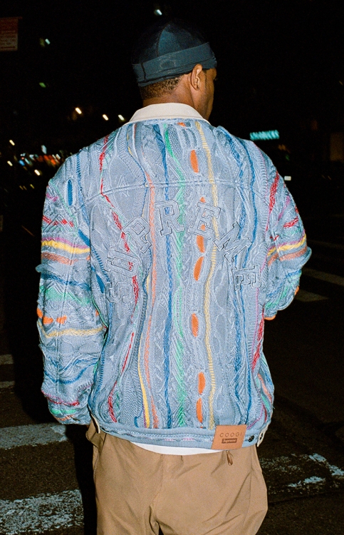 Nu är det COOGIS tur att få slå ihop sig med Supreme genom att kanalisera livfullheten hos de klassiska tröjorna och den övergripande känslan av 90-talets stil. Kollektionen består av fyra stickade plagg samt en t-shirt med brodyr, varav de stickade jackorna är tveklöst mest iögonfallande.