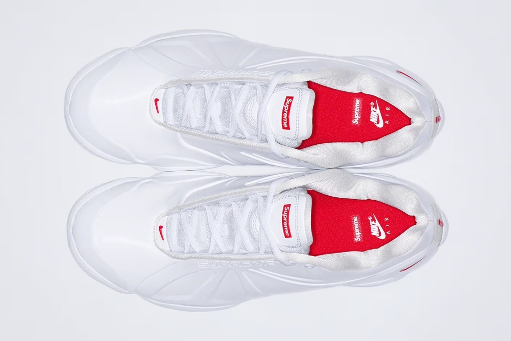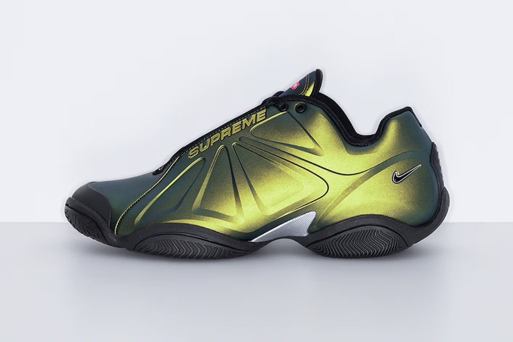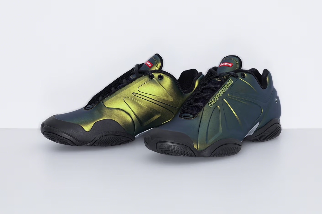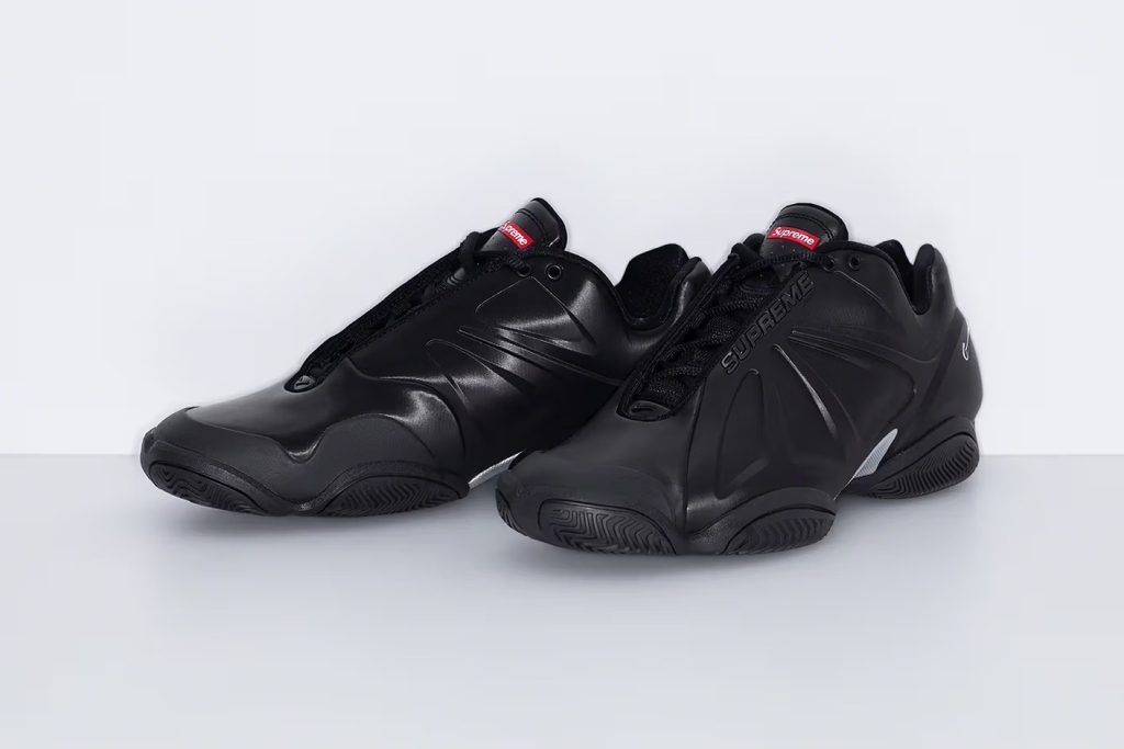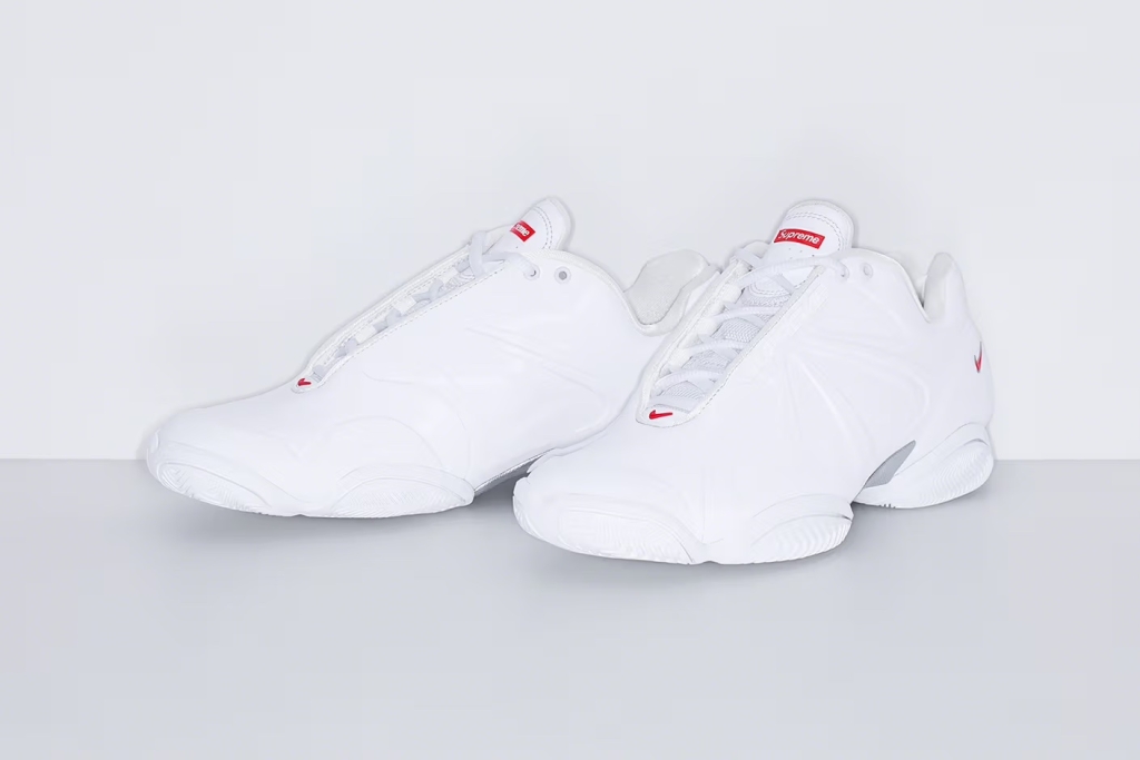 Den nya versionen av sneakern är exklusiv för Supreme och bygger vidare på den modell som debuterade i början av 2000-talet och var känd för att synas på den världskända tennisspelaren Andre Agassis fötter. Originalet lanserades i röda och silvriga färger under 2002, en futuristisk och enkel färgdesign som Supreme tar tillbaka på en svart respektive vit design.