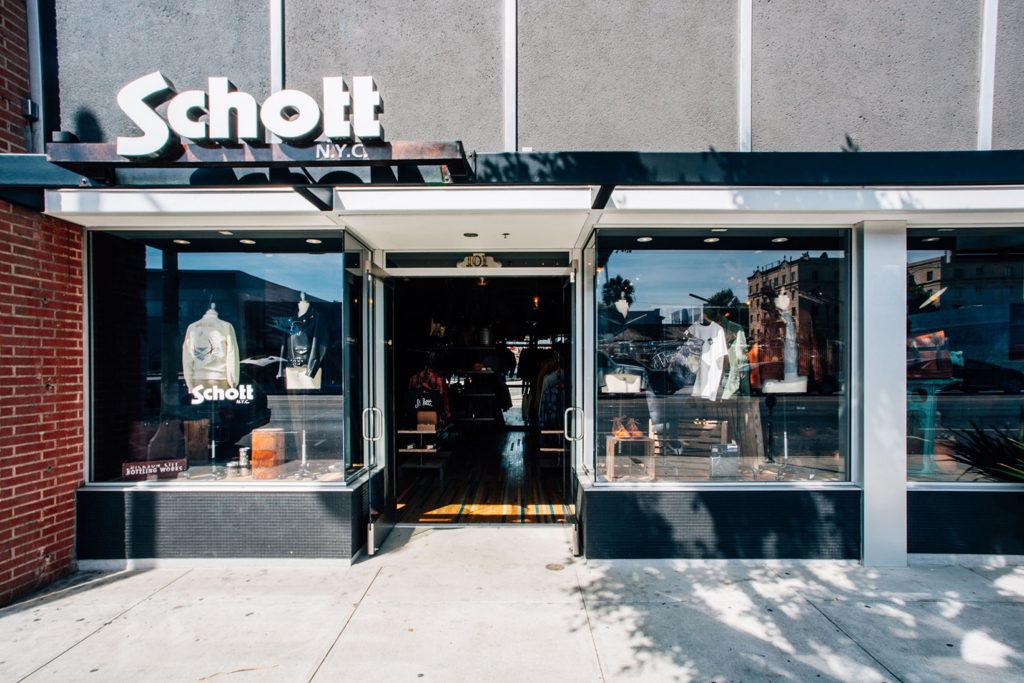 Schott NYC öppnade sin första butik på USAs västkust när dörrarna till flaggskepps-butiken på La Brea Avenue i Los Angeles, Kalifornien slogs upp. Den nya 103 kvadratmeter stora butiksytan erbjuder ett komplett samling av ytterkläder, tillbehör och grooming produkter för både män och kvinnor. Utöver varor från sin egna etikett, kommer den nya platsen också bära tredjeparts märken som: Chippewa Boots, Coronado leather accessories, Digby & Iona jewelry, Otterwax leather care, Shoppe 815 candles och Thorogood Boots.