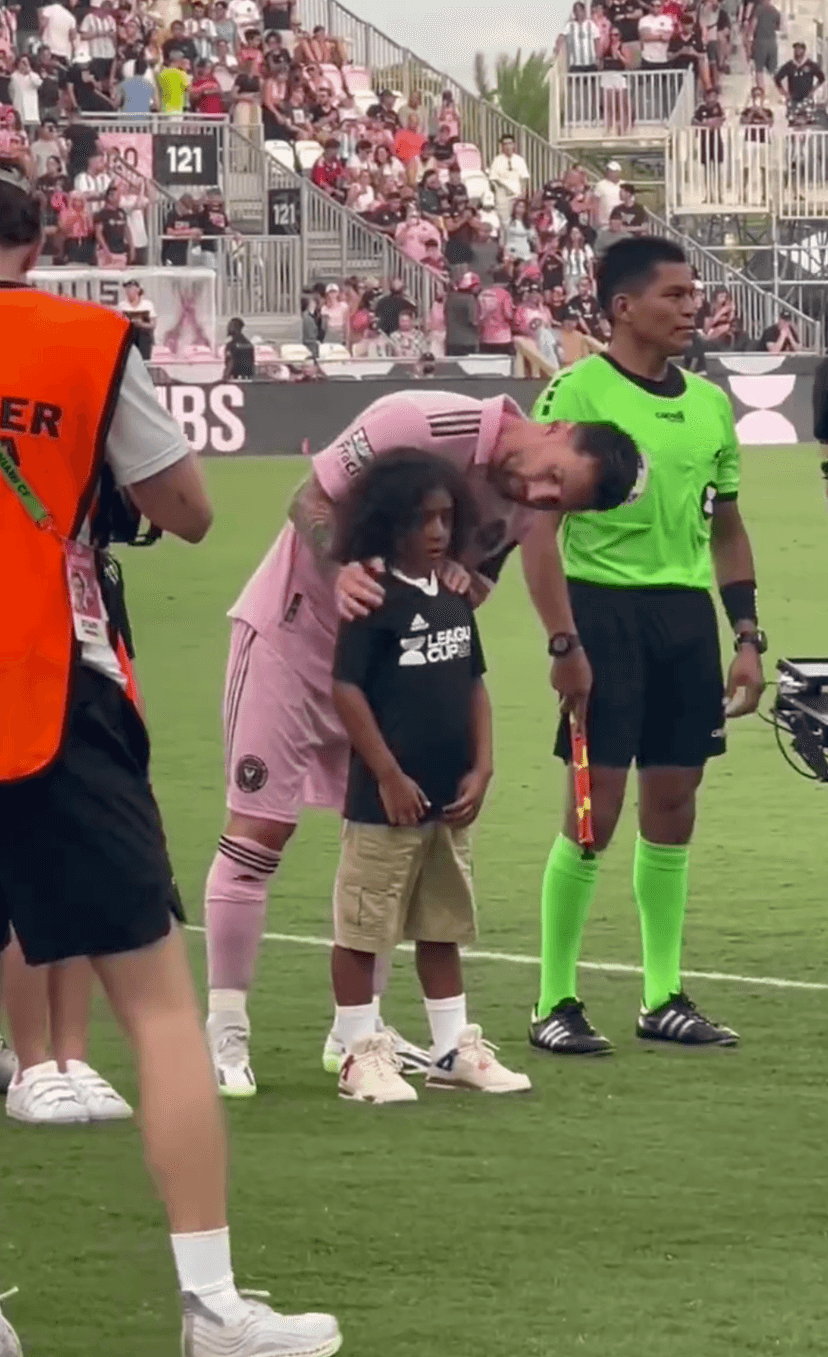 Läs mer om Se Lionel Messi hjälpa planstormare fly från vakter - 2024.09.30