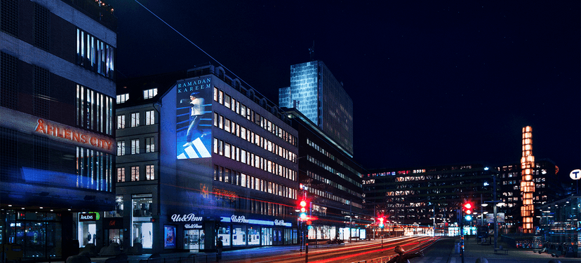 Läs mer om Se adidas projicera bilder över Stockholm inför Ramadan - 2024.03.11