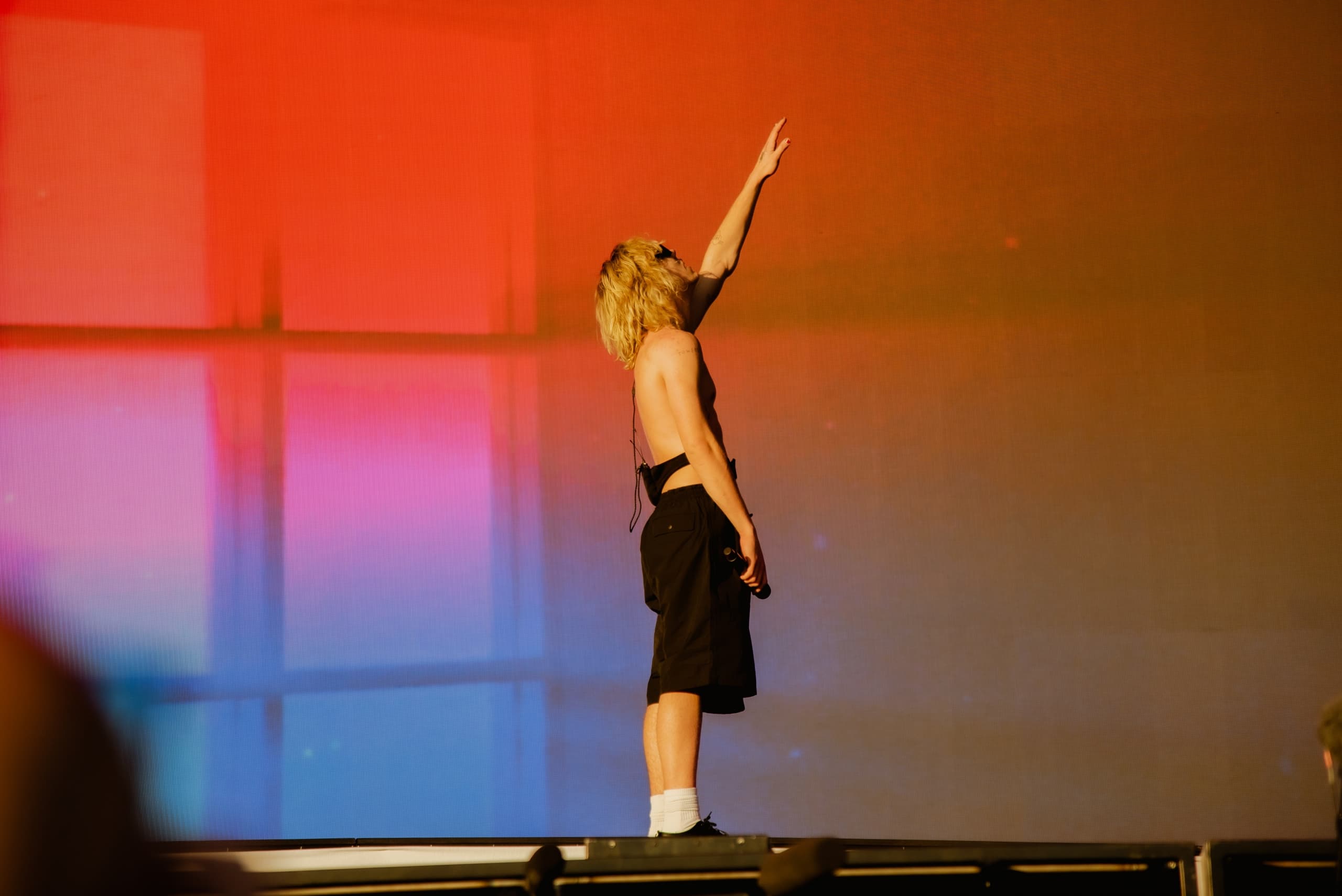 Vi träffar The Kid LAROI efter hans spelning på Lollapalooza. Det här är första gången han besöker Sverige, eller ja typ. Han var faktiskt här redan veckan innan, bland annat för att se idolerna My Chemical Romance när de spelade på Gröna Lund (ja det är sant!) När vi träffar honom har han precis hängt i Post Malone’s loge, som också ska köra live på festivalen senare under kvällen. “We just beat Post two times in a row in beer pong!” säger LAROI och visar glatt upp sin vinst som består av en bunt utgångna två dollarsedlar. Dessa delar han ut till sitt team. “Good luck tour money,” säger LAROI.