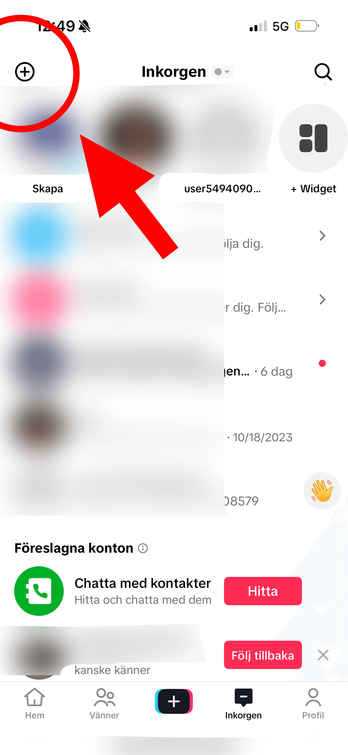 Det andra alternativet är att skapa gruppchatten i förhand. Då går du till inkorgen och trycker på ”+” uppe i det vänstra hörnet.