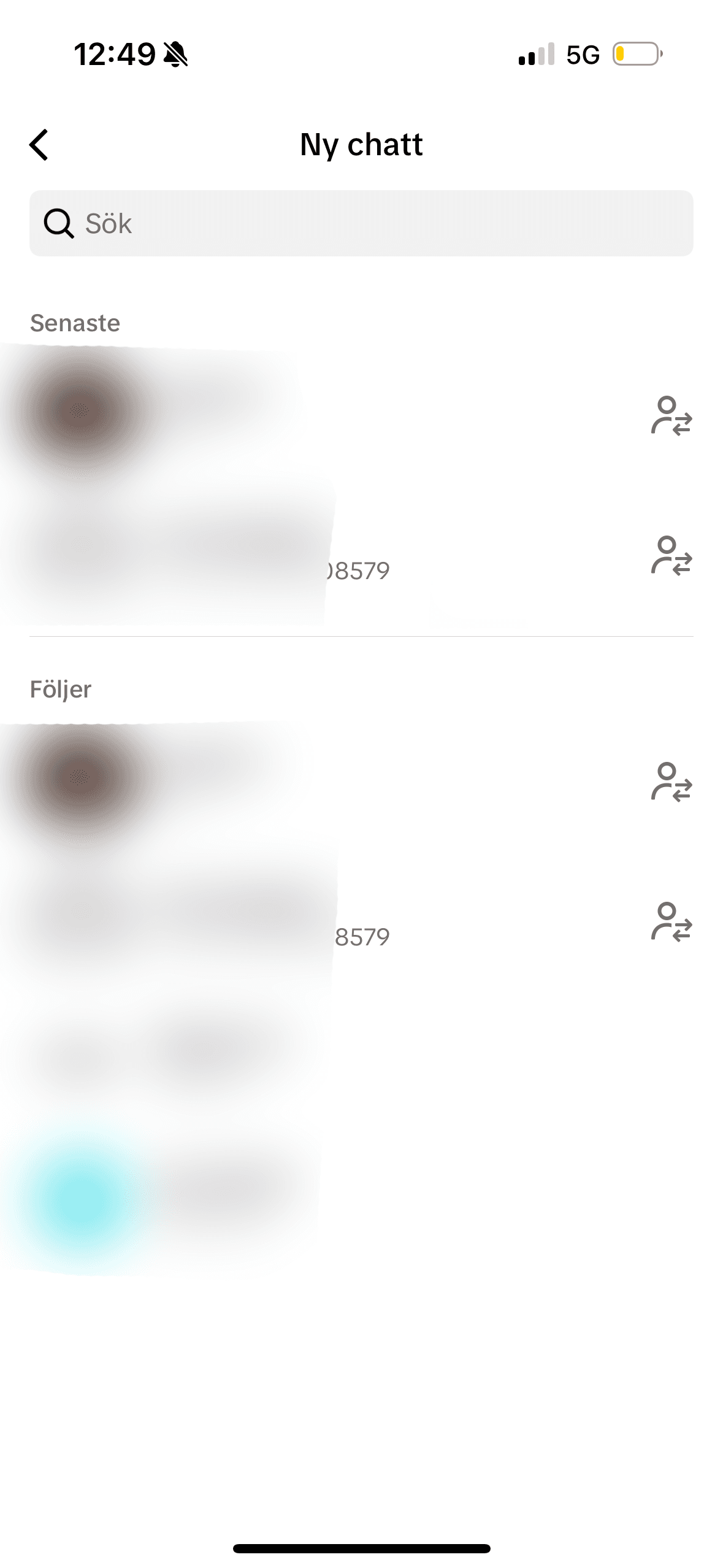 När du har tryckt på plusset kommer du till en ny meny kallad ”Ny chatt” där du kan välja vilka användare du vill starta chatten med. TikTok kommer att föreslå de du tidigare chattat med samt de du följer.