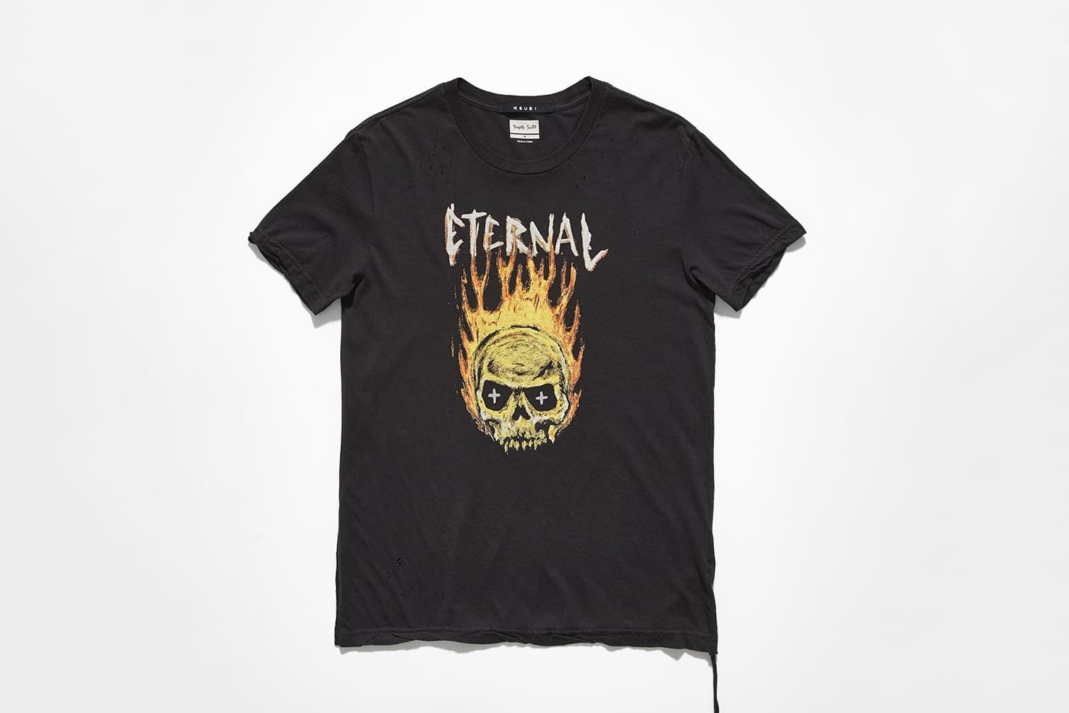 Att rapparen Travis Scott och Ksubi är igång med ett samarbete skrev vi tidigare om här. Kollektionen är en kapselkollektion som hämtar sin inspiration från Travis Scotts hemstad, Texas och består bland annat av jeansjackor,jeans, bomberjacka, hoodie med texten ”higher than heaven” samt en t-shirt med brinnande dollartecken och en med motiv av brinnande döskalle.