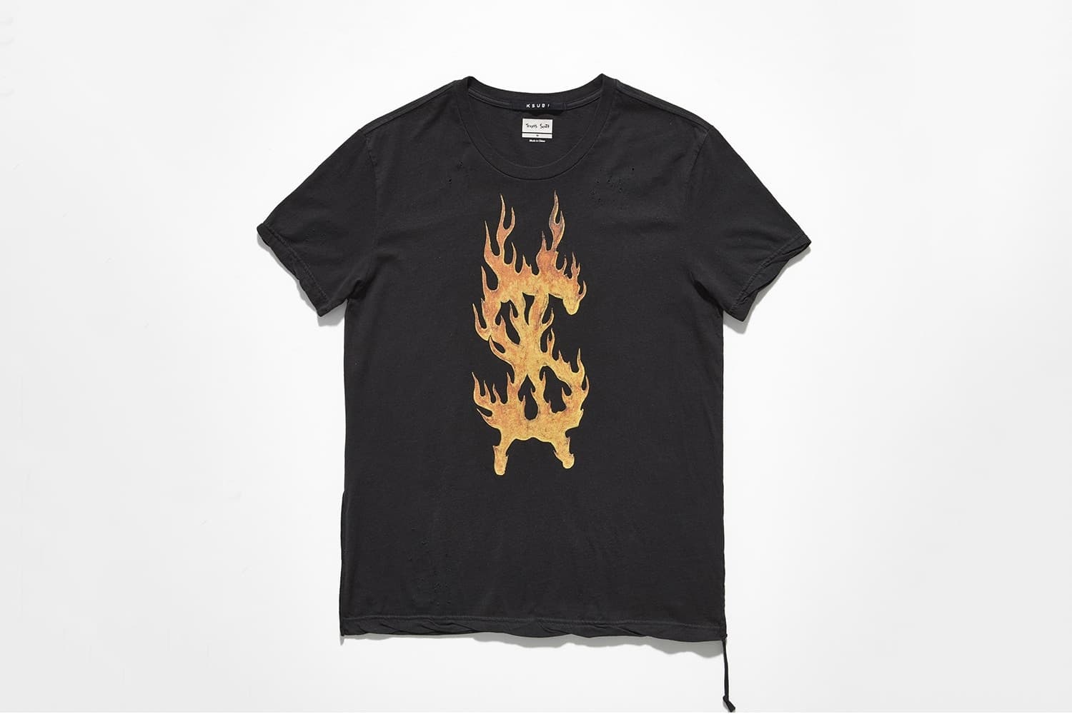 Att rapparen Travis Scott och Ksubi är igång med ett samarbete skrev vi tidigare om här. Kollektionen är en kapselkollektion som hämtar sin inspiration från Travis Scotts hemstad, Texas och består bland annat av jeansjackor,jeans, bomberjacka, hoodie med texten ”higher than heaven” samt en t-shirt med brinnande dollartecken och en med motiv av brinnande döskalle.