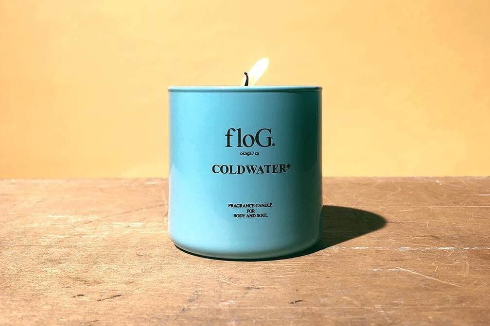 Doftljuset går vid namn ”COLDWATER” och är i en turkos nyans med svart typsnitt i texten “floG, fragrance candle for body and soul.”Se fler bilder här nedan.