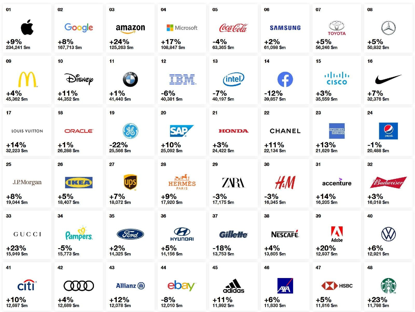 Inte helt oväntat så är det Apple, Google och Amazon som toppar listan när Interbrand presenterar sin lista över över världens mest inflytelserika varumärken i sin Best Global Brands 2019 studie. På listan får vi se ett flertal lyxvarumärken och enligt samma studie är just den kategorin den snabbaste växande där vi får se en ökning från varumärken som Gucci på 23%, Dior 16% och Chanel 11%.