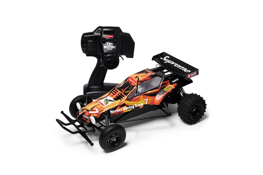 Ny vecka och nytt släpp från Supreme. Efter förra veckans samarbetsrika släpp så är det något lugnare denna vecka. För säsongens trettonde släpp ser vi den efterlängtade Supreme Tamiya Hornet radiostyrda bilen och ett nytt ”Cat in the Hat” samarbete som inkluderar brädor och accessoarer. Utöver det får vi se en lansering av Supreme Polartec tröjor, jackor, pannband, mössor och väskor. Spana in vad som släpps i ovan bildgalleri. Precis som alltid kan listan ändras, släppet sker i Supremes NYC, London, Los Angeles och Paris butiker samt klockan 12:00 online.