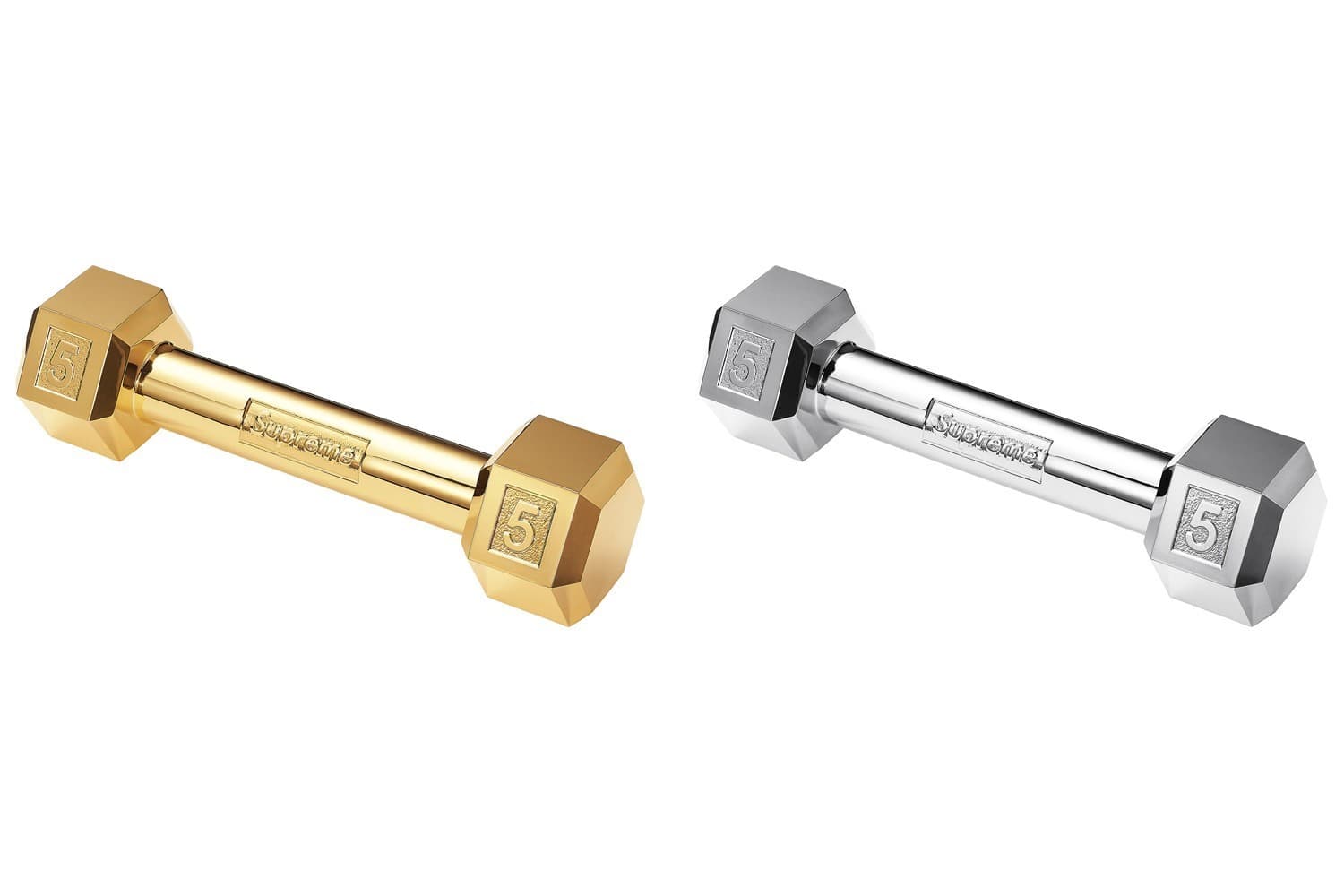 Ny vecka, nytt Supreme drop. Efter förra veckans release av RIMOWA resväskor får vi se en vecka som inte bjuder på några större samarbeten men däremot redskap som kan få dig att bli större då Supreme denna vecka släpper ett par Supreme guld och silver hantlar. Vi får även se en release som går i ett Ganesha tema med releasen av en Ganesha pälsjacka, tröja samt shorts.