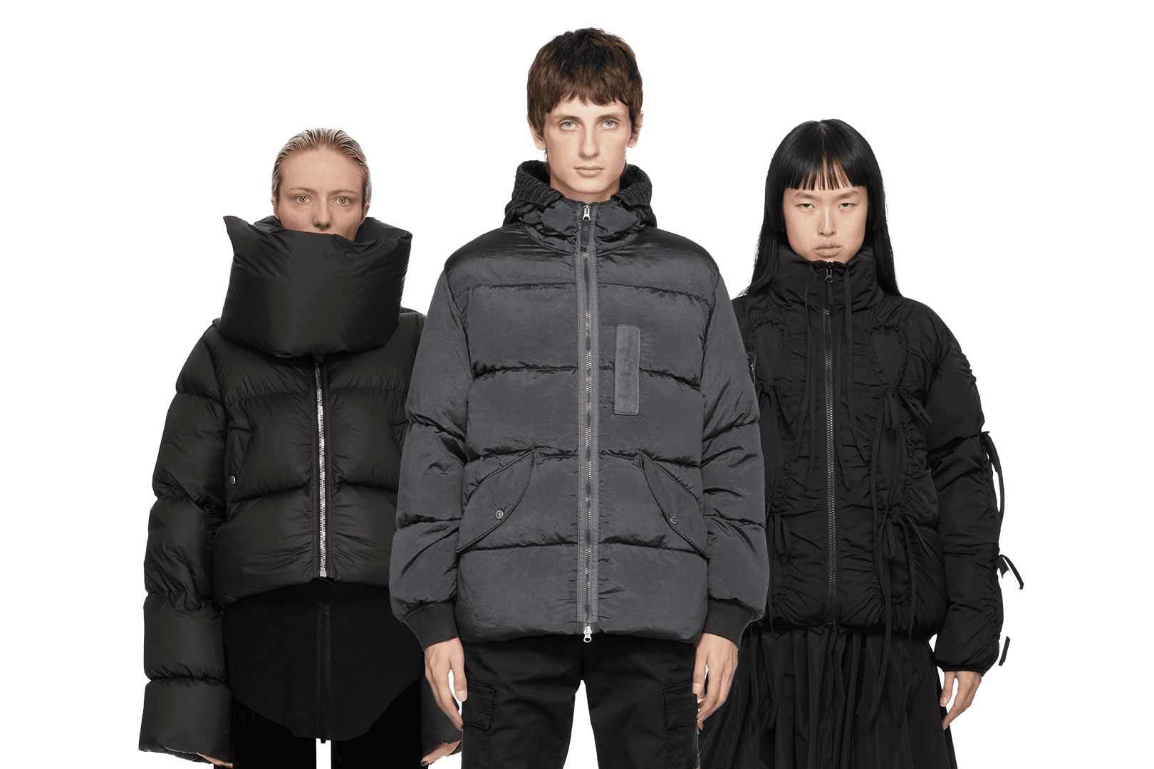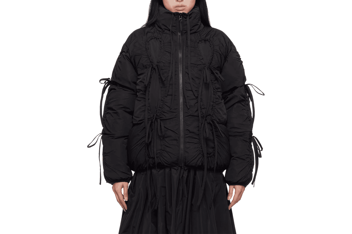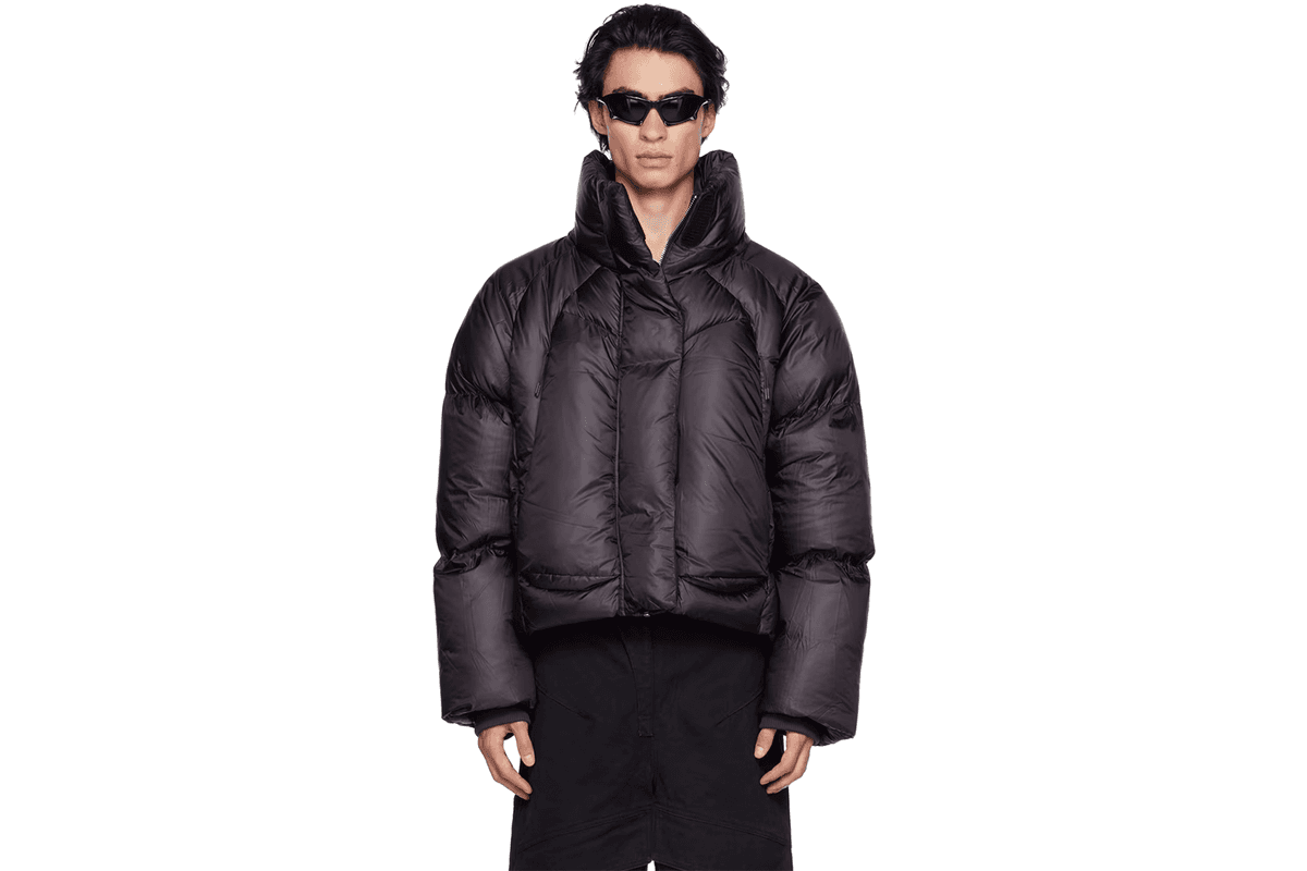 Den mesta abstrakta jackan i vårt urval är ett unisex-verk av Nya Zeeländska uppstickaren Entire Studios, som fått göra en unik kollektion åt Ssense. Deras approach mot puffers bryter ner hela den grundläggande mallen som jackans siluett är byggd på, det vill säga själva puffarna. Istället för symmetriska rader vertikalt eller horisontellt väljer de att använda veck i olika storlekar för olika delar av jackan, med förstorad och uppdragen krage som pricken över i:et. Värmen är det inget fel på då dunjackans funktion fortfarande är intakt, men dess presentation är något du definitivt inte ser i vanliga butiker.