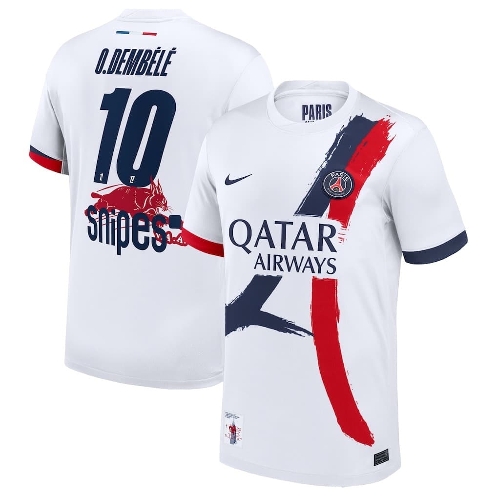 För att ta samarbetet vidare har Virgil Abloh Archive nu släppt en limiterad matchtröja. Designen hämtar inspiration från klubbens bortaställ för 2025-26 och bär tydliga spår av Virgils estetik, med PSG:s maskot, lodjuret, i klassisk amerikansk sportstil. På bröstet står texten ”Away From Home”, en blinkning till Virgils resa från USA till Paris och hans kreativa inflytande världen över.