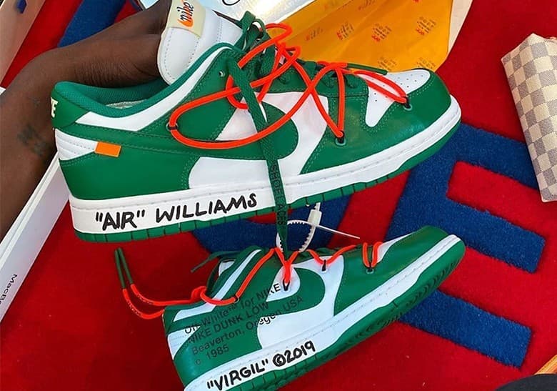 Via Instagram så visade Virgil upp ett par av ”Pine Green” Nike Dunk Low som var till proffs skejtaren Stevie Williams. Han har tidigare setts skatea i ett skornas röda färgställning. På bilden som publicerades på Instagram har Virgil ännu en gång använt sig av sin signatur och på midsulan skrivit “‘AIR’ WILLIAMS” och ‘VIRGIL ©2019.”