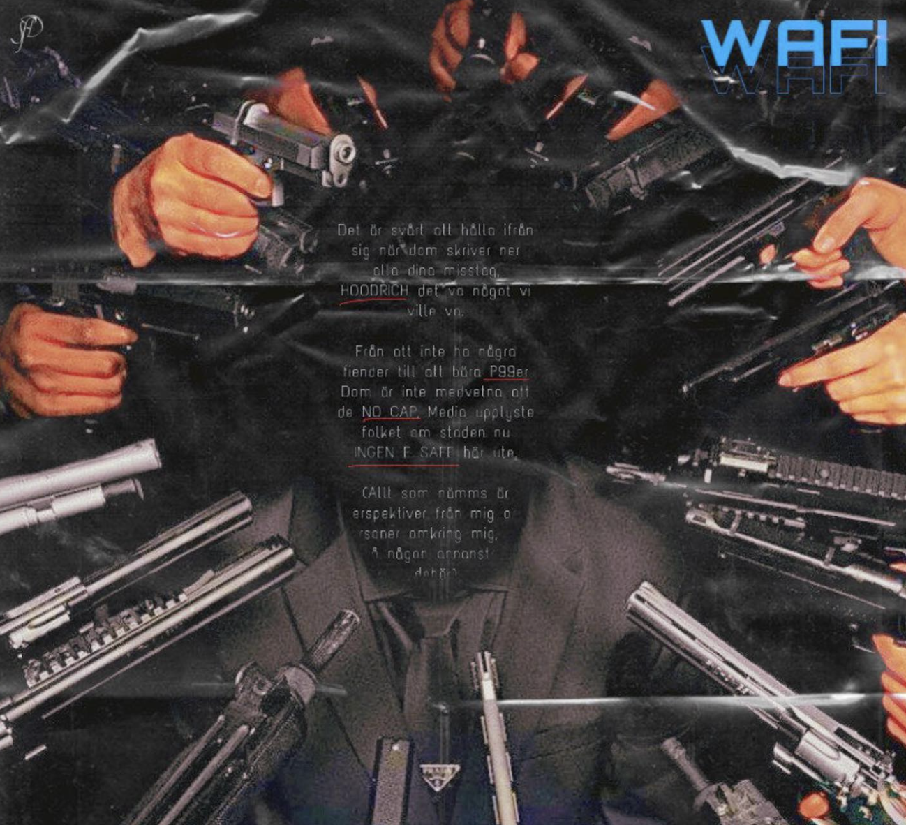 Först kom den atmosfäriska ”Narnia”, sen kom den motiverande bangern ”Hoodrich”, nu kommer den kalla trap-viben ”P99”. Med produktion av Alex Lejonhjärta (NZINGABOY m.fl) har Wafi fått ett perfekt ljudlandskap att placera sina melodier och texter, som tagit en mycket hårdare riktning sedan han debuterade med ”PERUGIA”.