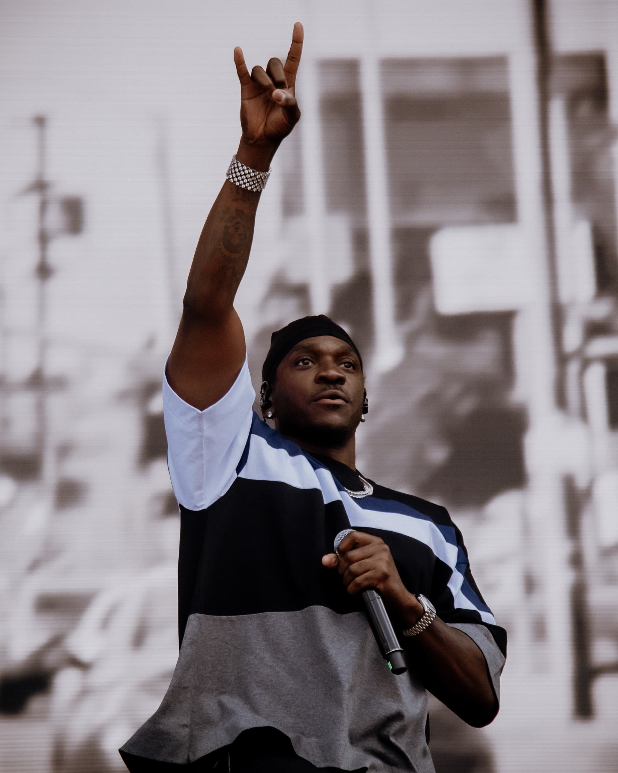 Få har lyckats hålla sig på toppen av rap-gamet utan att stagnera eller leva på gamla meriter. Pusha T är en av dessa sällsynta artister och när han kliver upp på scenen under den stekheta fredagssolen är det inte svårt att förstå varför. 46-åringen har gått från genombrottet i brödraduon Clipse under det tidiga 00-talet till en fruktsam solo-karriär nära sammanflätad med Kanye Wests GOOD Music och Def Jam, varav han även agerat som president för det förstnämnda. Hans senaste album It’s Almost Dry från 2023 hyllades till skyarna av kritiker och det är nästan hela det projektet han kör i första etappen av sin spelning på Flamingo-scenen. Därefter går han av, medans DJn börjar spela Waka Flocka Flame.