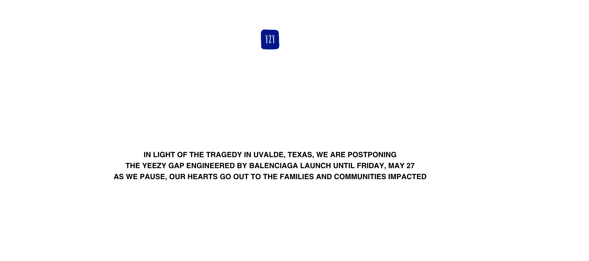 ”In light of the tragedy in Uvalde, Texas, we are postponing the YEEZY GAP ENGINEERED BY BALENCIAGA launch until Friday, May 27. As we pause, our hearts go out to the families and communities impacted.”