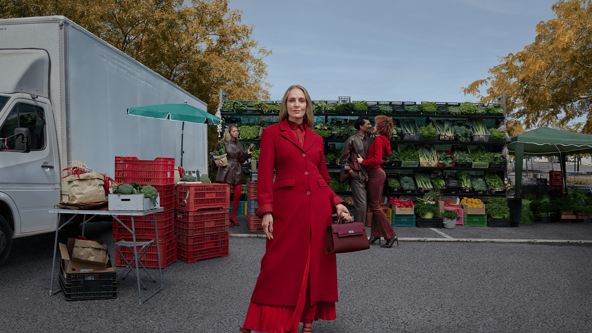 Platsen för AW25-kampanjen är en färgstark farmers market i Portugal. Där möter Uma Thurman versioner av sig själv, en kreativ twist som speglar idén att inspiration kan komma från var som helst. PinkPantheress bidrar med sin spontana och experimentella stil, som speglar kampanjens hyllning till självförtroende och lekfull identitet.